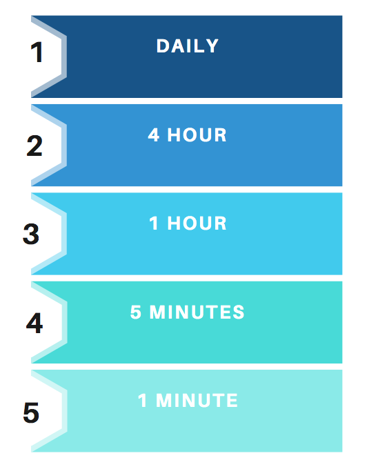 As you can see from the image above, I start with the Daily timeframe and narrow down my analysis to the 1 minute chart.