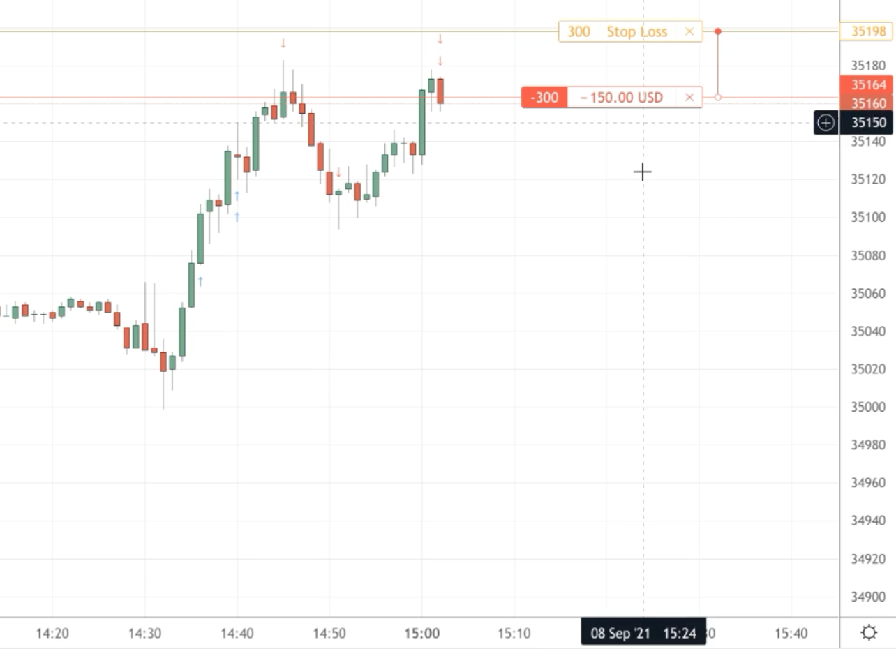 I could have placed it just over 35180, but I wanted to give some room for the trade to breathe.